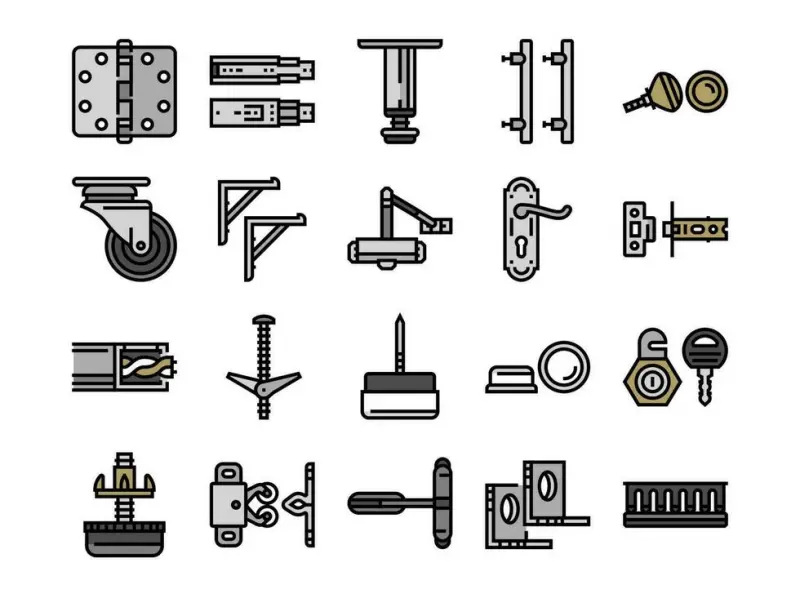 Furniture hardware includes all metal or plastic parts used in furniture. These parts help with opening, closing, fixing, and supporting.