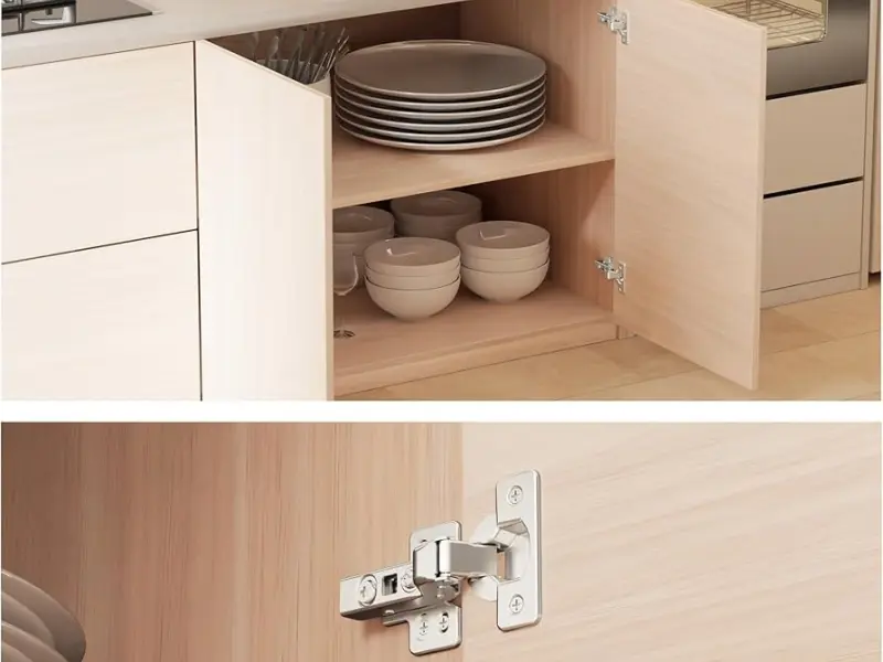 Full overlay soft-close concealed cabinet hinges with 110° opening angle. Premium quality nickel-plated finish. 6-way adjustable.